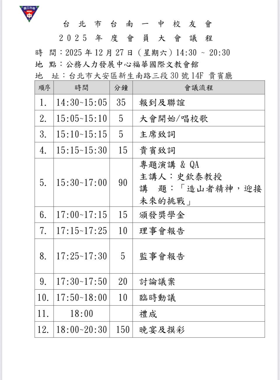時 間:2025 年 12 月 27 日(星期六)14:30 ~ 20:30
