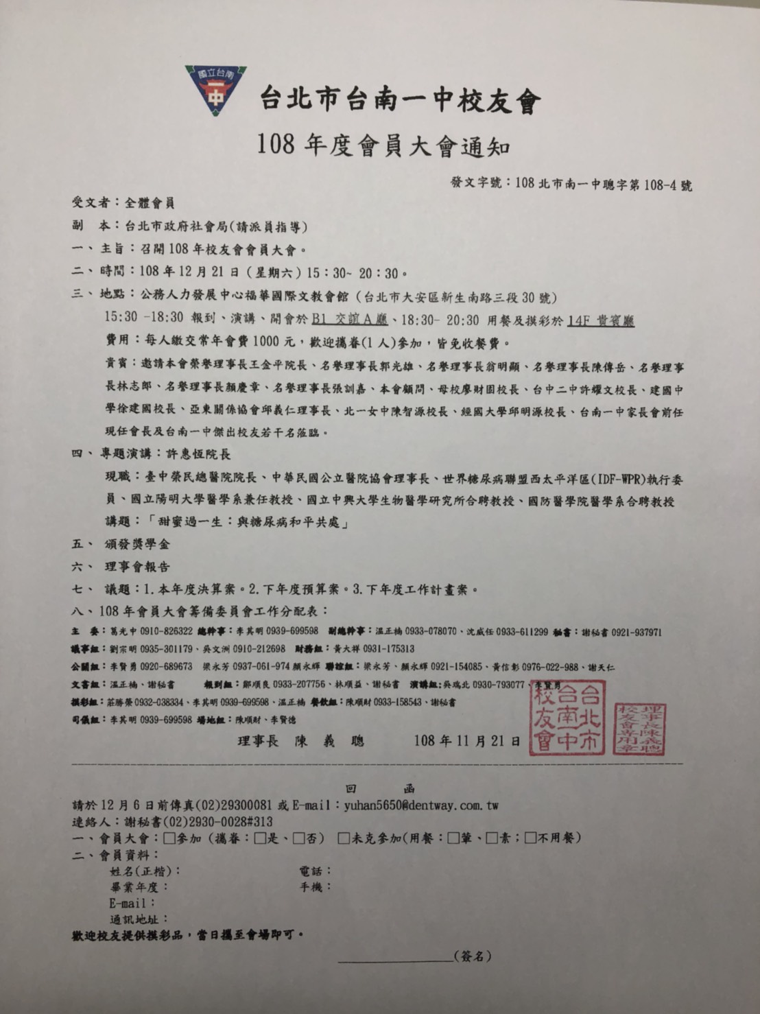 108.12.21台北市台南一中校友會會員大會及傑出校友聯誼會 |